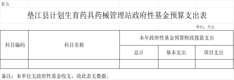 5.垫江县计划生育药具药械管理站政府性基金预算支出表