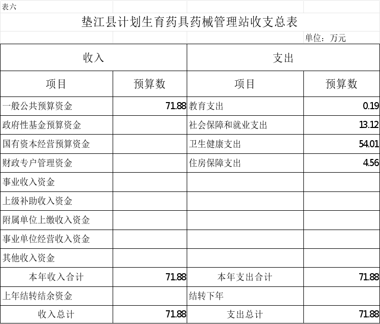 6.垫江县计划生育药具药械管理站收支总表