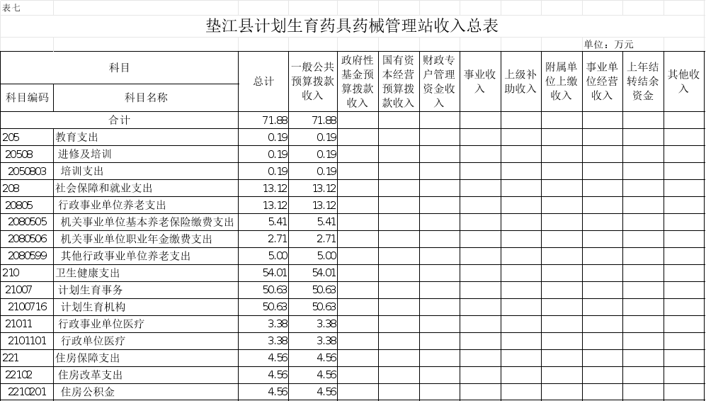 7.垫江县计划生育药具药械管理站收入总表