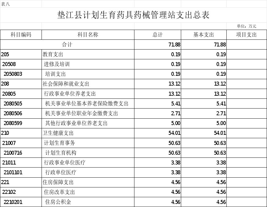 8.垫江县计划生育药具药械管理站支出总表