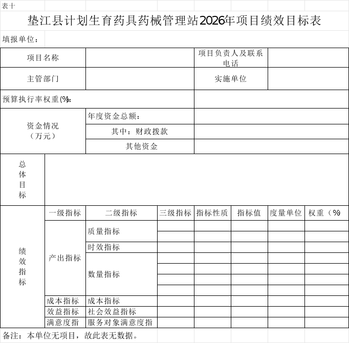 10.垫江县计划生育药具药械管理站2026年项目绩效目标表