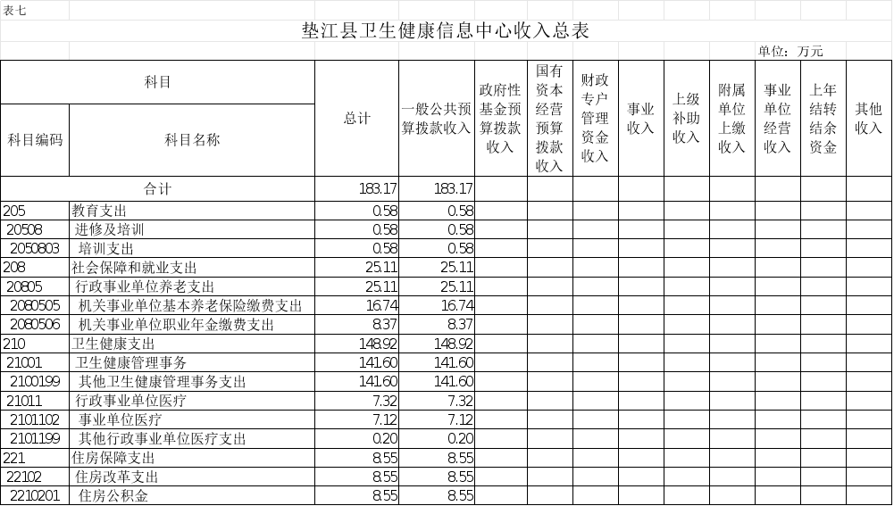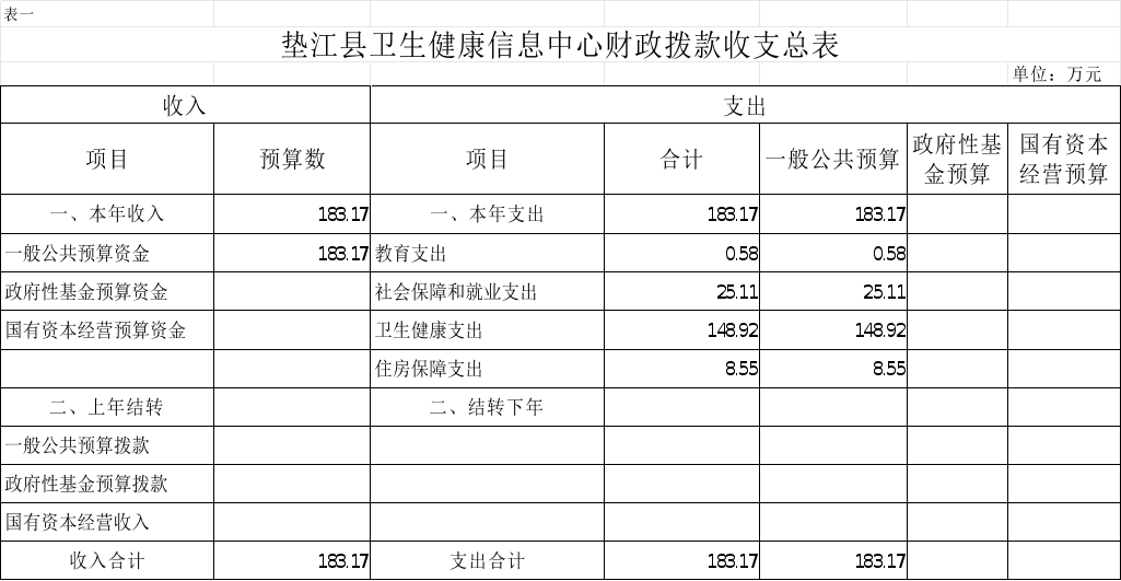 附表:1.垫江县卫生健康信息中心财政拨款收支总表