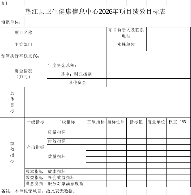 10.垫江县卫生健康信息中心2026年项目绩效目标表