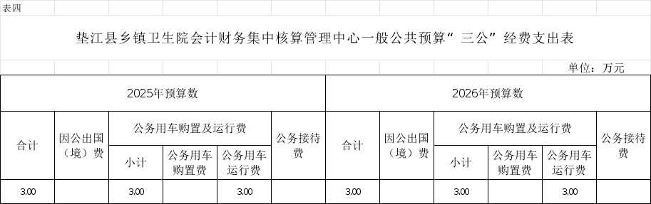 4.垫江县乡镇卫生院会计财务集中核算管理中心一般公共预算“三公”经费支出表