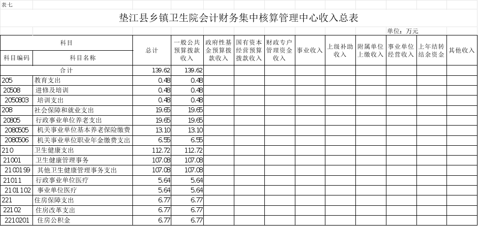 7.垫江县乡镇卫生院会计财务集中核算管理中心收入总表