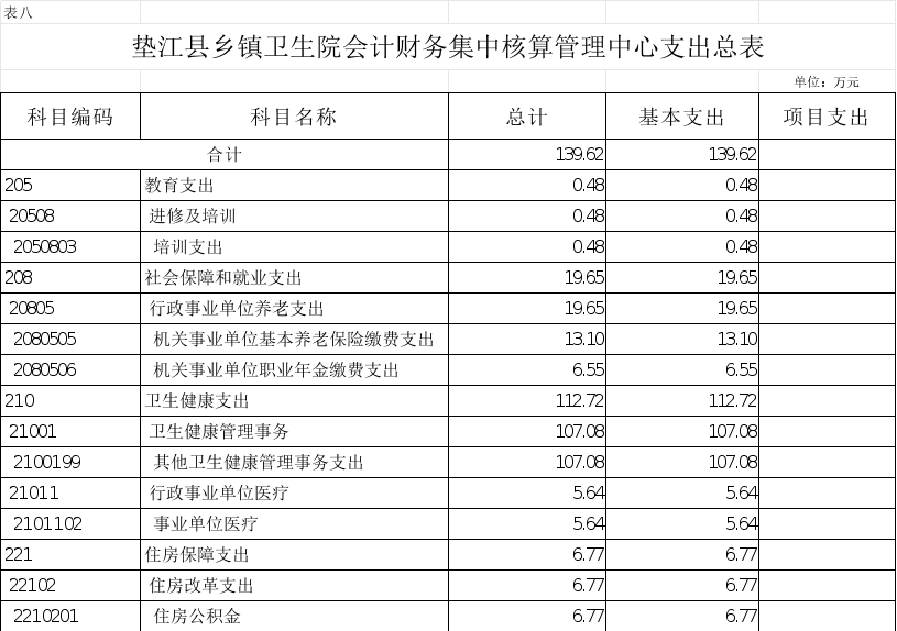 8.垫江县乡镇卫生院会计财务集中核算管理中心支出总表