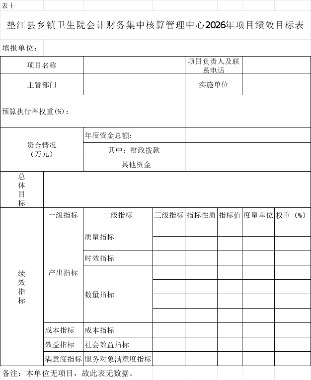 10.垫江县乡镇卫生院会计财务集中核算管理中心2026年项目绩效目标表