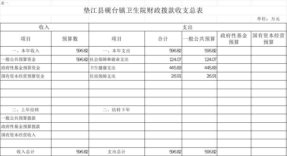 附表:1.垫江县砚台镇卫生院财政拨款收支总表