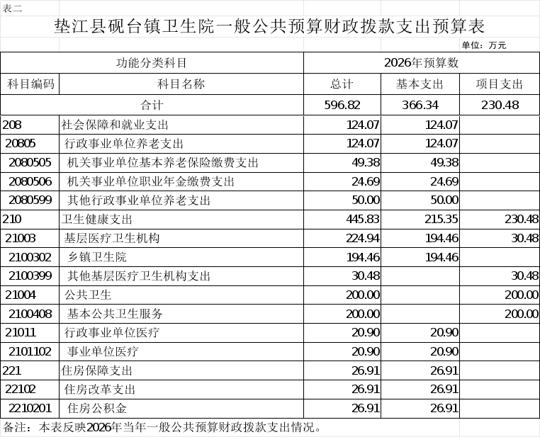 2.垫江县砚台镇卫生院一般公共预算财政拨款支出预算表