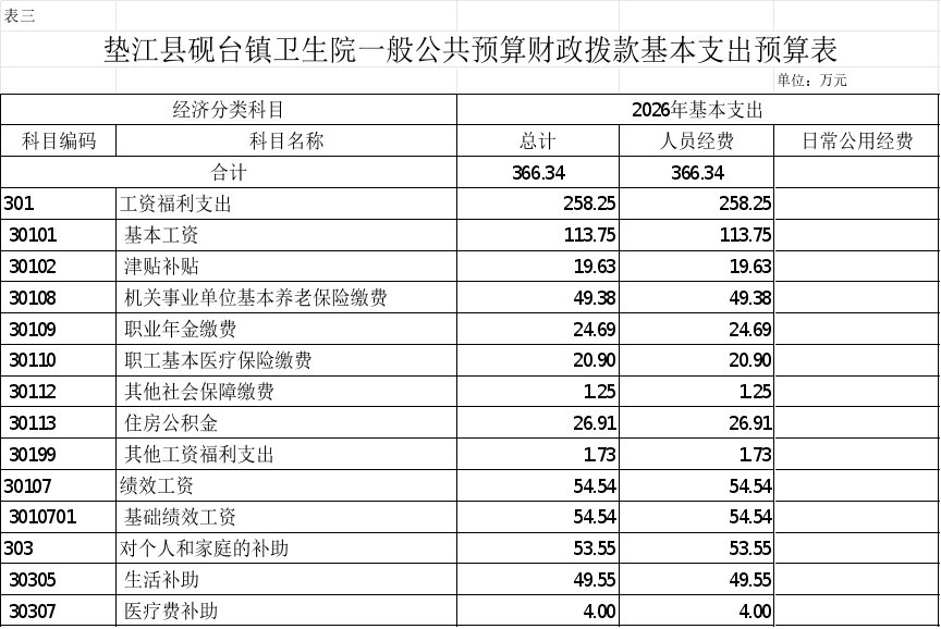 3.垫江县砚台镇卫生院一般公共预算财政拨款基本支出预算表