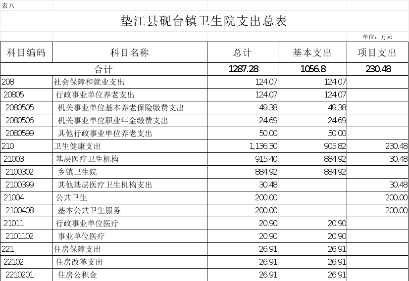 8.垫江县砚台镇卫生院支出总表