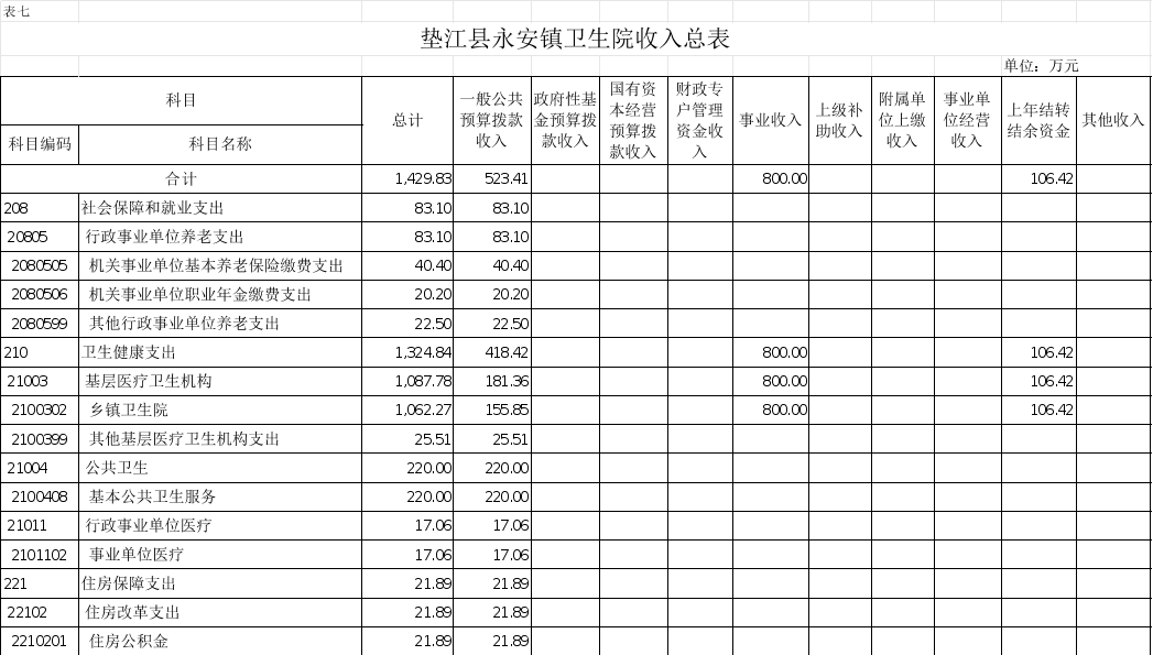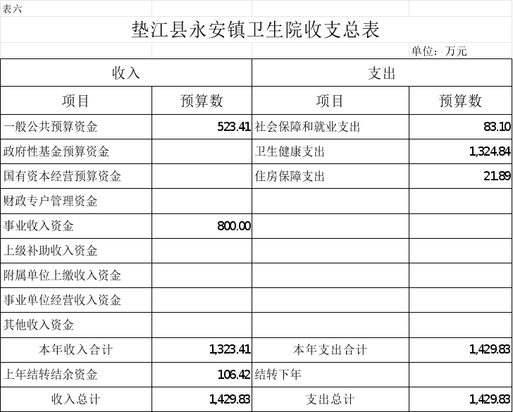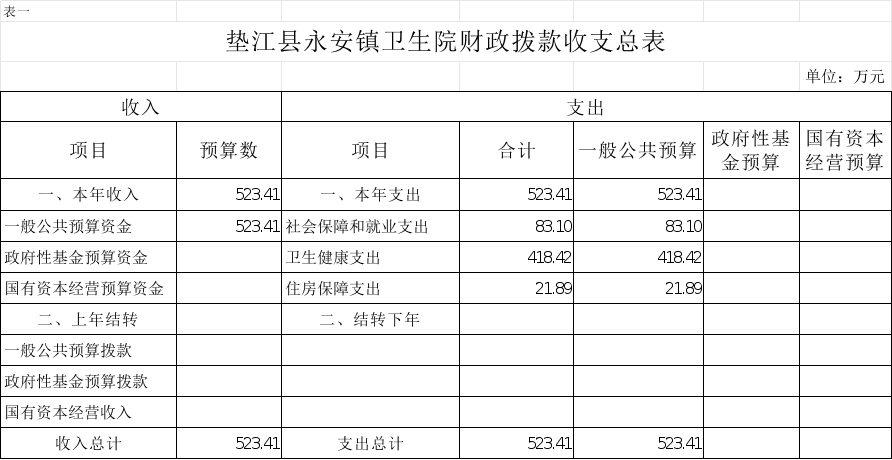 附表:1.垫江县永安镇卫生院财政拨款收支总表