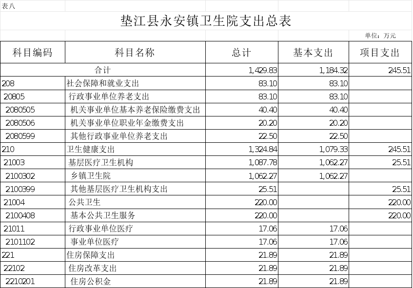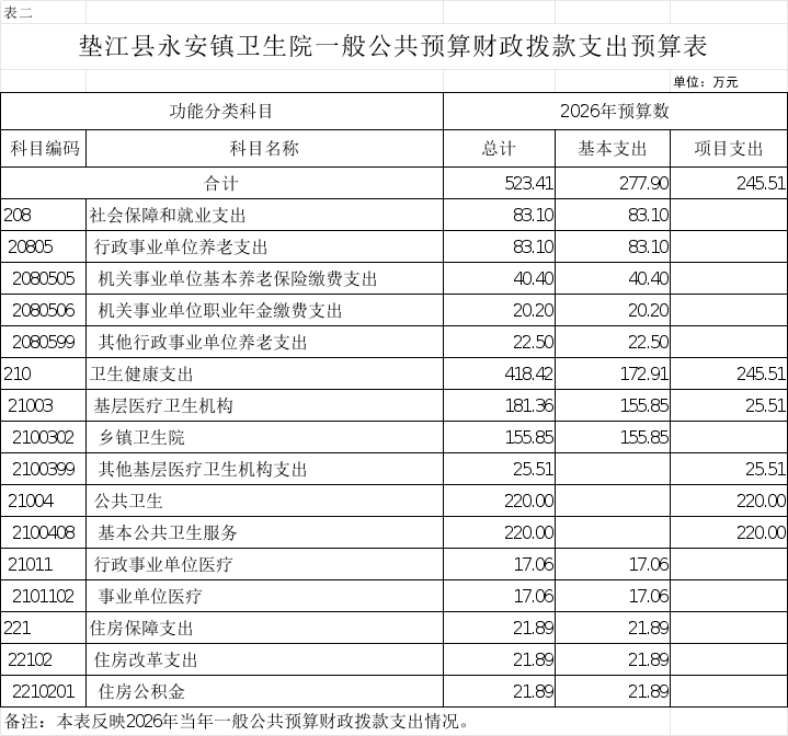 2.垫江县永安镇卫生院一般公共预算财政拨款支出预算表