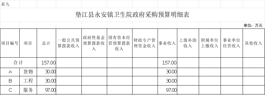 (二)政府采购情况。单位政府采购预算总额157万元:政府采购货物预算30万元、政府采购工程预算30万元、政府采购服务预算97万元;其中一般公共预算拨款政府采购0万元:政府采购货物预算0万元、政府采购工程预算0万元、政府采购服务预算0万元。