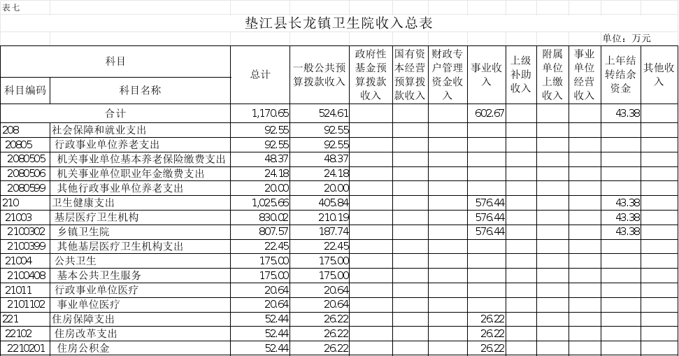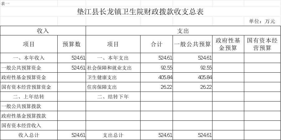 附表:1.垫江县长龙镇卫生院财政拨款收支总表