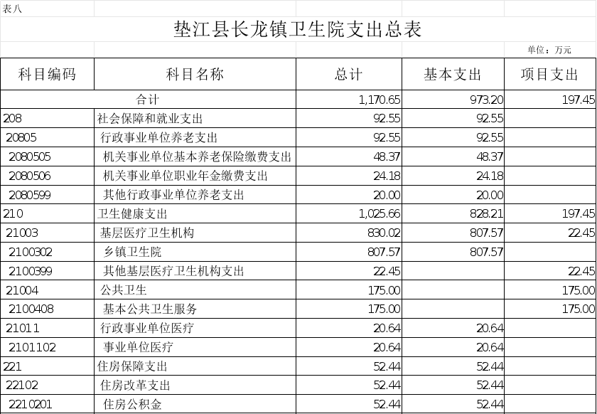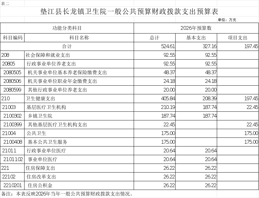2.垫江县长龙镇卫生院一般公共预算财政拨款支出预算表