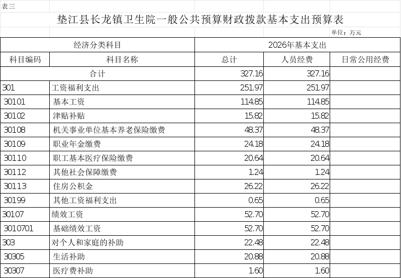 3.垫江县长龙镇卫生院一般公共预算财政拨款基本支出预算表
