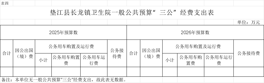 4.垫江县长龙镇卫生院一般公共预算“三公”经费支出表
