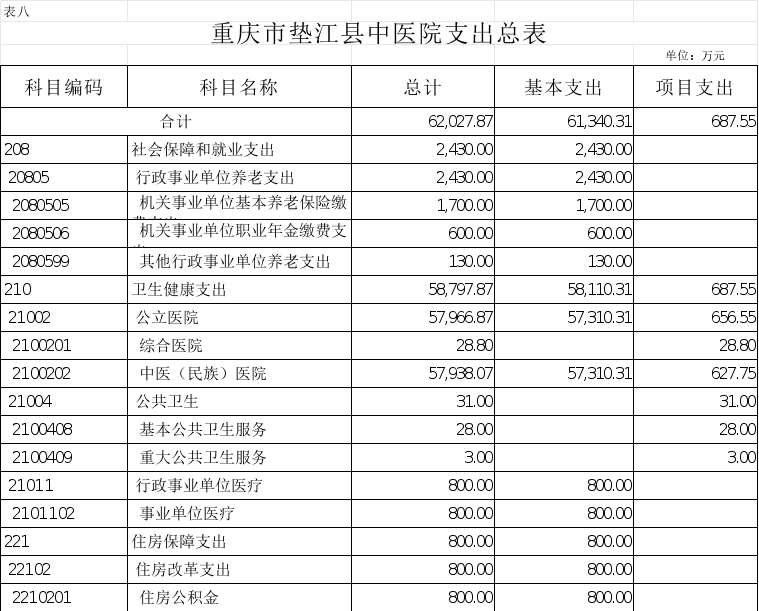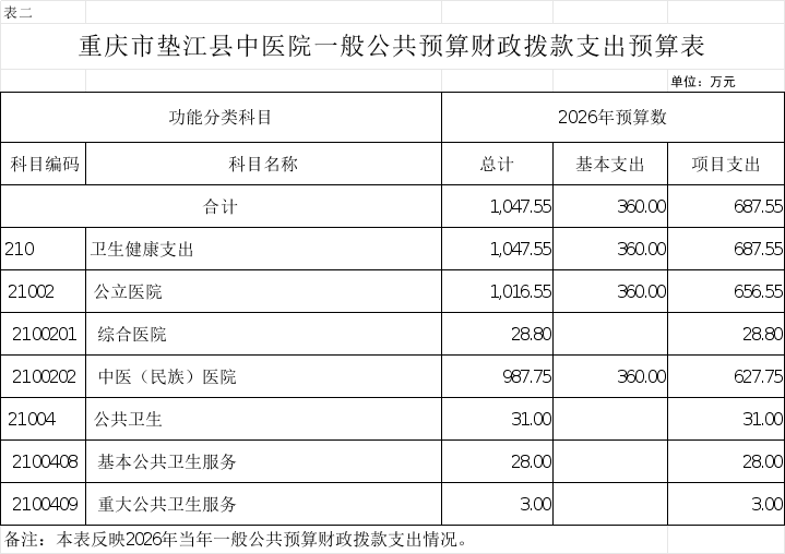 2.重庆市垫江县中医院一般公共预算财政拨款支出预算表