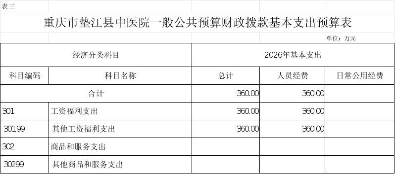 3.重庆市垫江县中医院一般公共预算财政拨款基本支出预算表