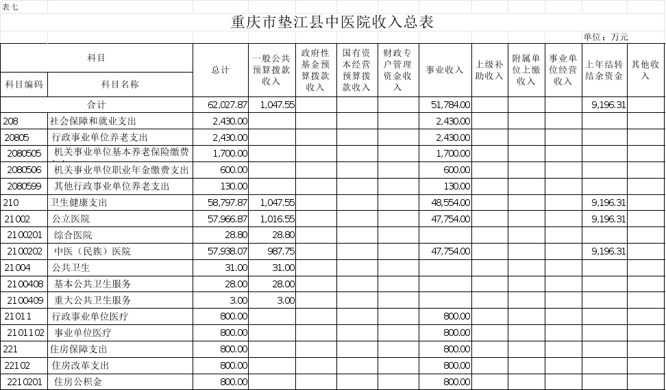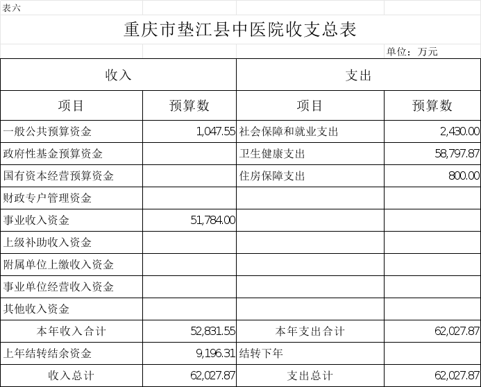 附表:1.重庆市垫江县中医院财政拨款收支总表