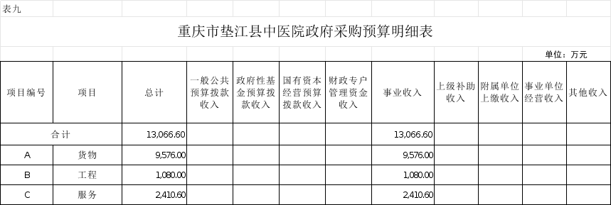 (二)政府采购情况。算单位政府采购预算总额13066.6万元:政府采购货物预算9576万元、政府采购工程预算1080万元、政府采购服务预算2410.6万元;其中一般公共预算拨款政府采购0万元:政府采购货物预算0万元、政府采购工程预算0万元、政府采购服务预算0万元。
