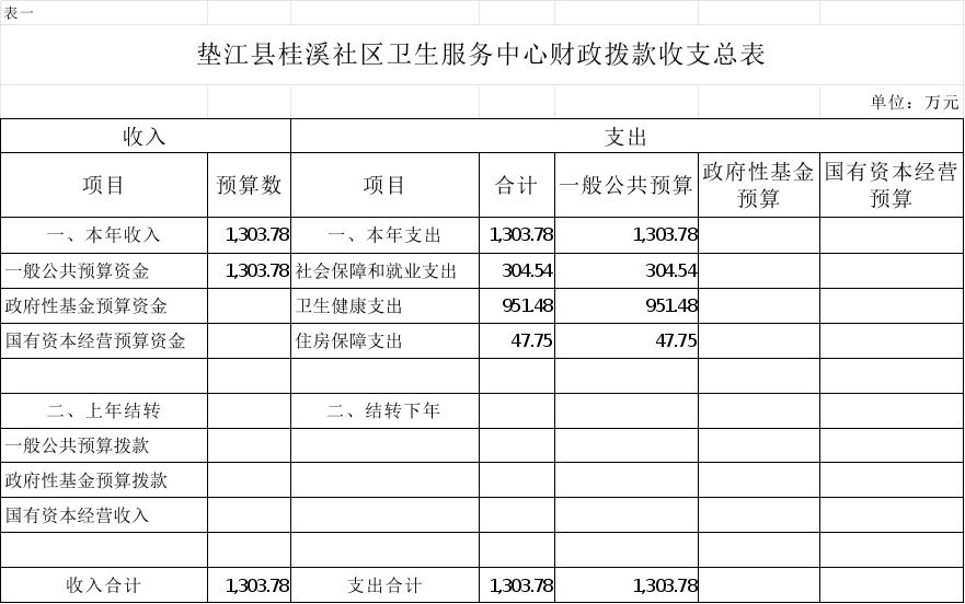 附表:1.垫江县桂溪社区卫生服务中心财政拨款收支总表