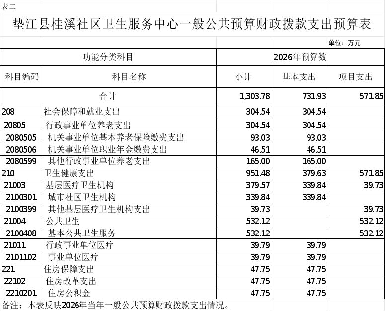 2.垫江县桂溪社区卫生服务中心一般公共预算财政拨款支出预算表