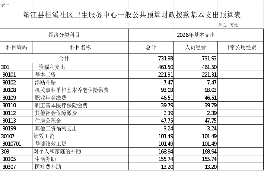 3.垫江县桂溪社区卫生服务中心一般公共预算财政拨款基本支出预算表