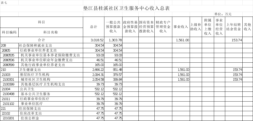 7.垫江县桂溪社区卫生服务中心收入总表