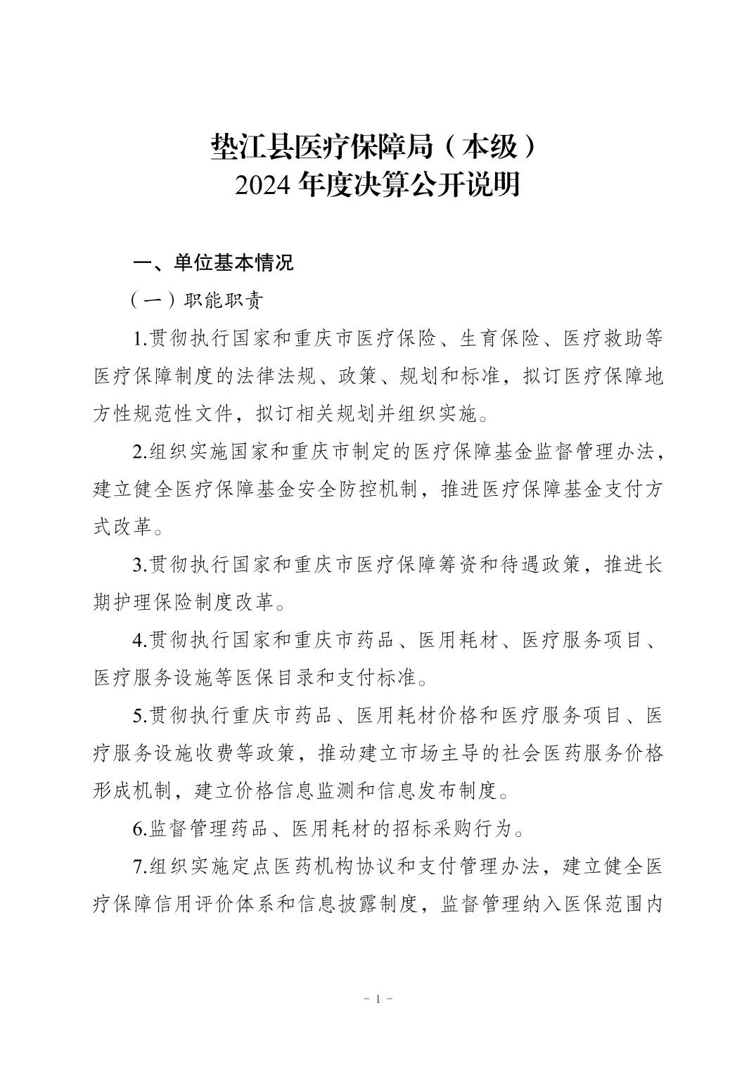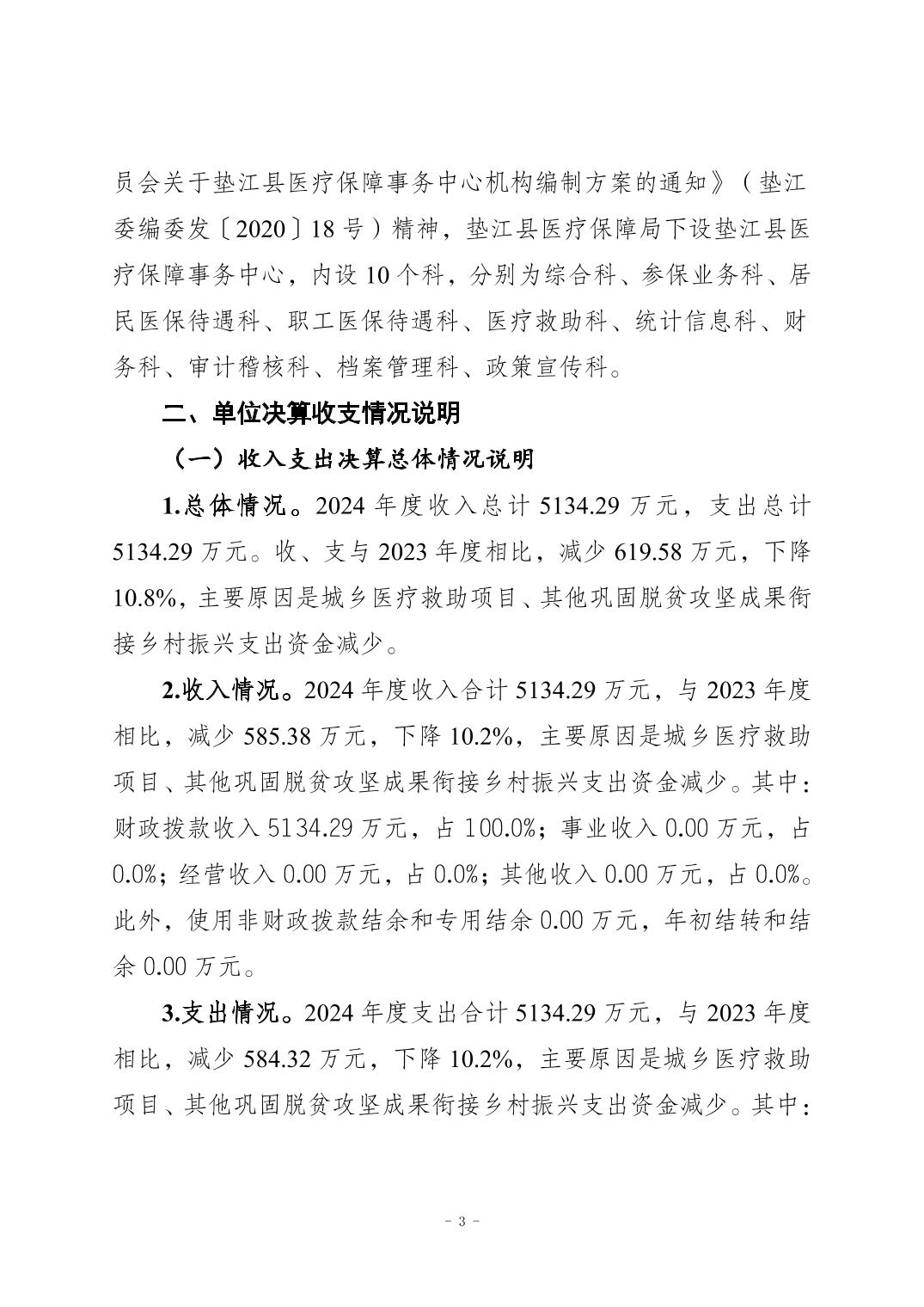 垫江县医疗保障局(本级)2024年度决算公开说明