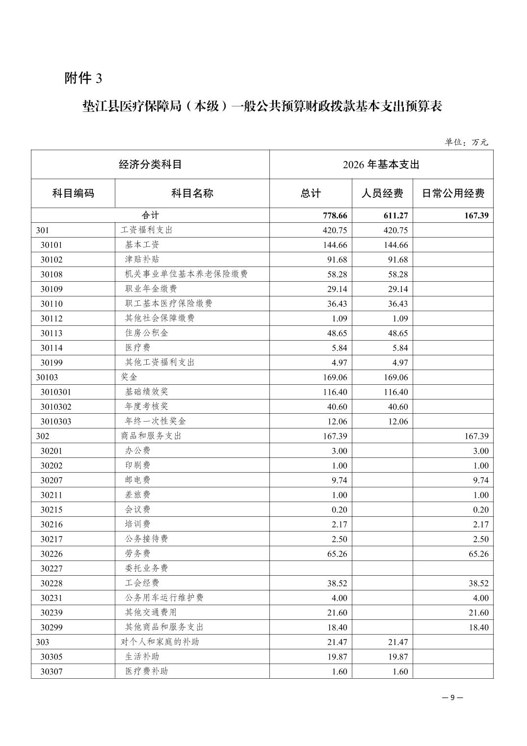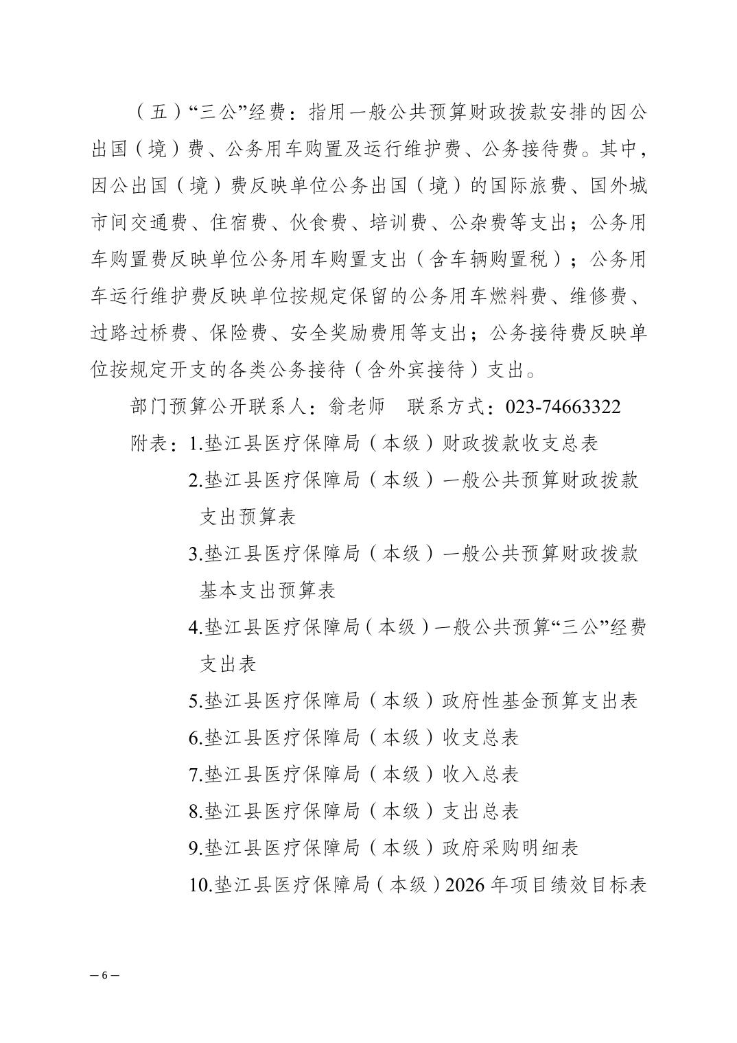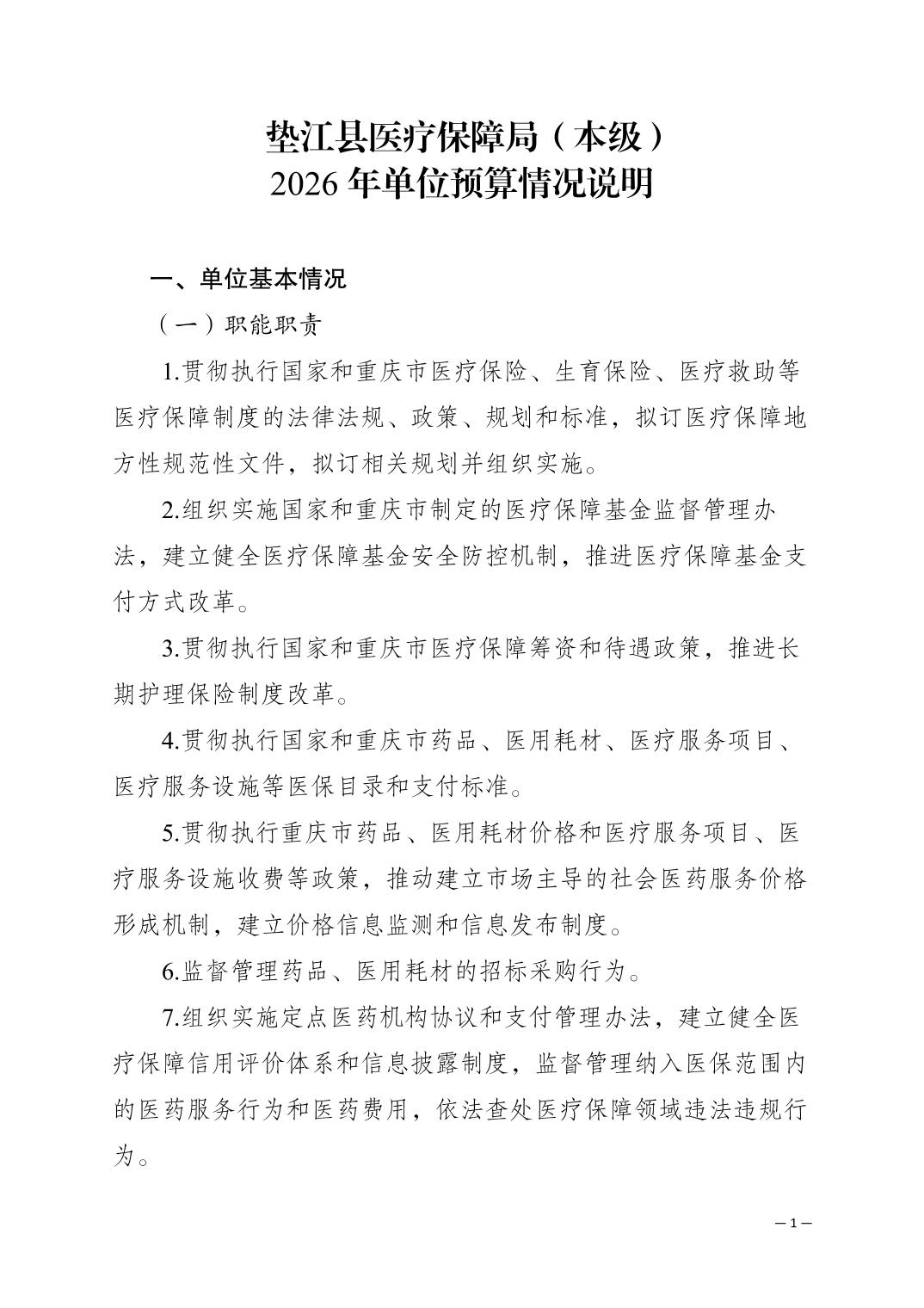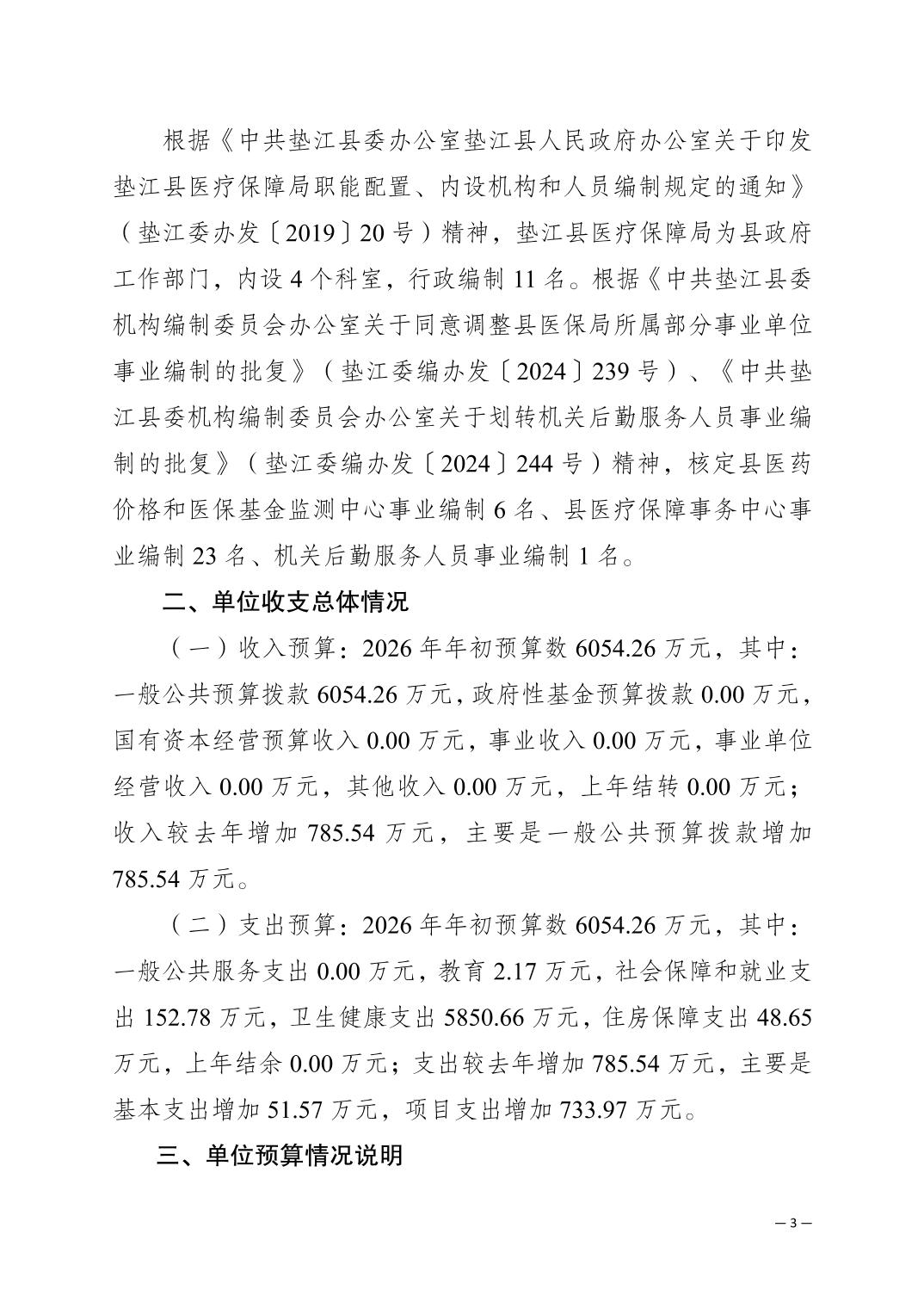 垫江县医疗保障局(本级) 2026年单位预算情况说明