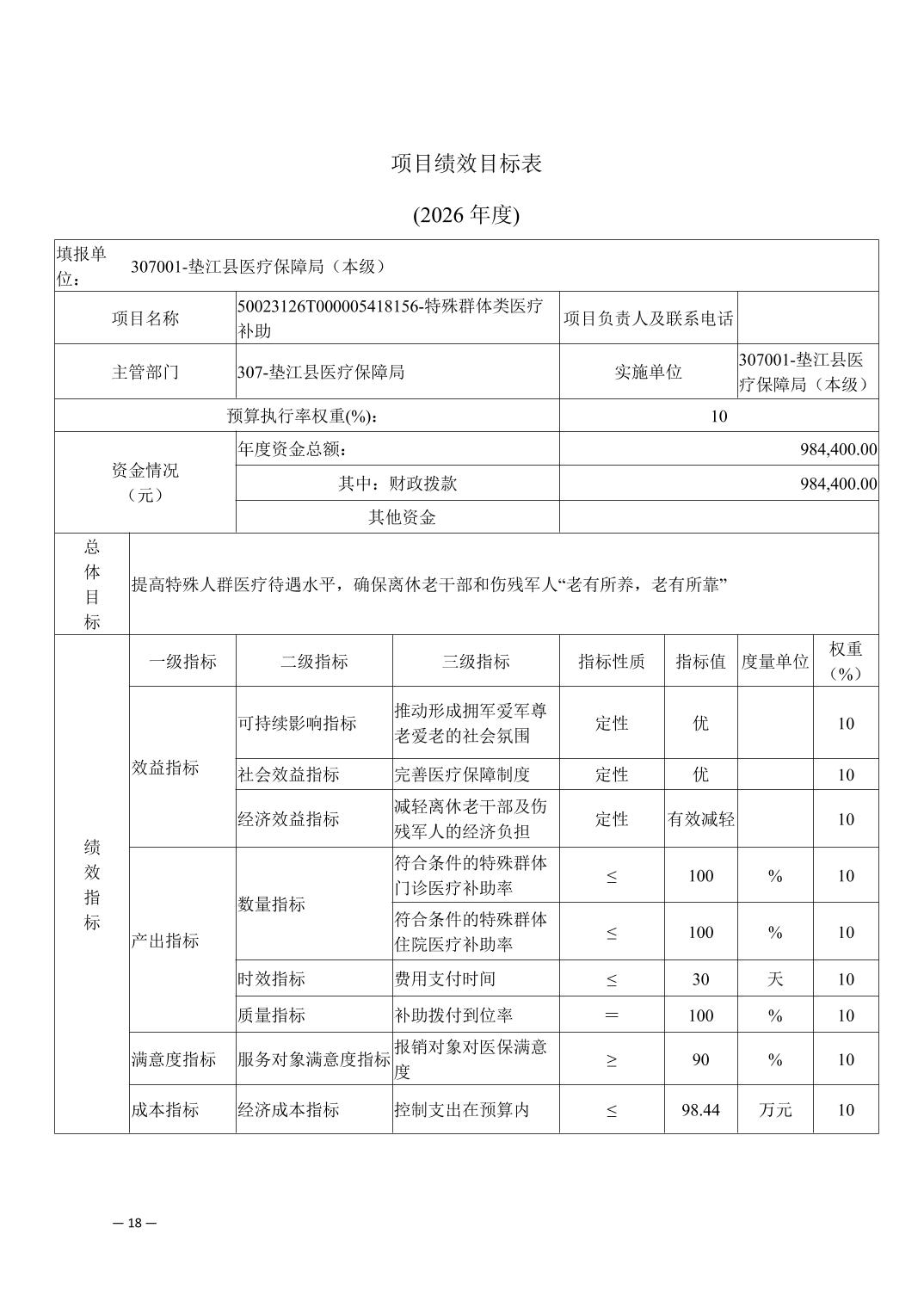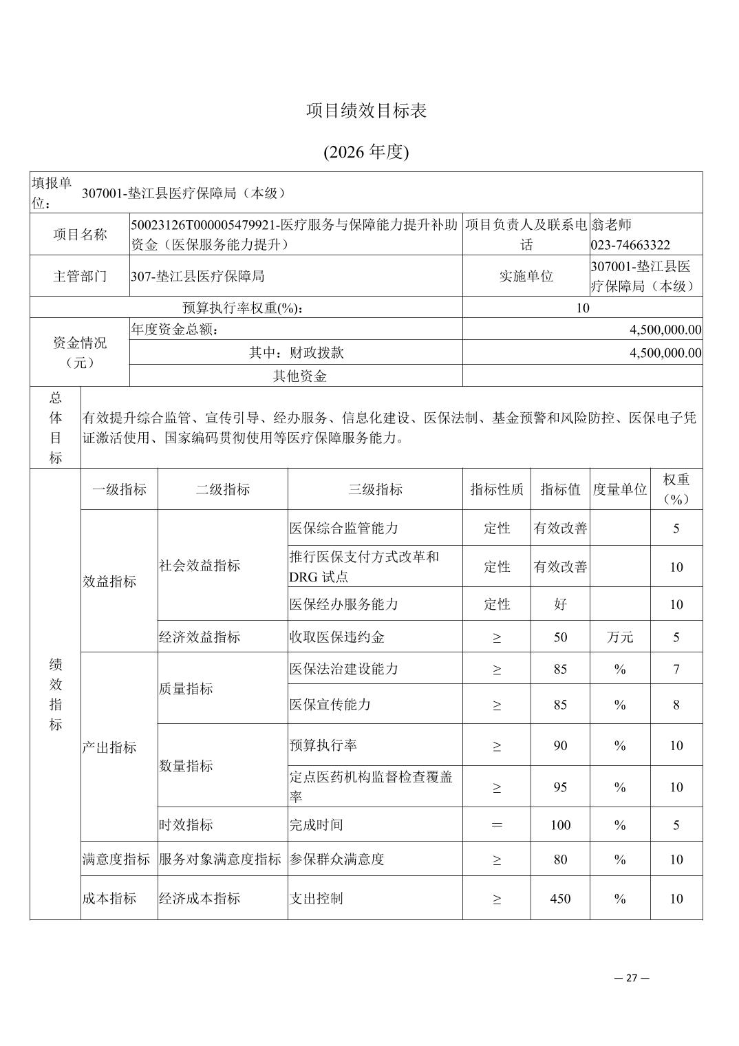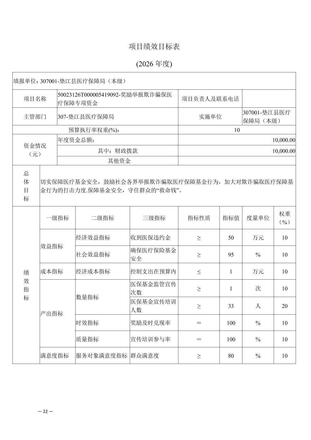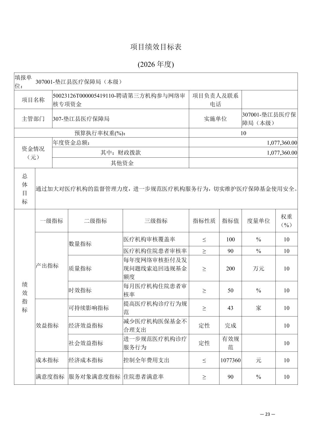 垫江县医疗保障局(本级) 2026年单位预算情况说明