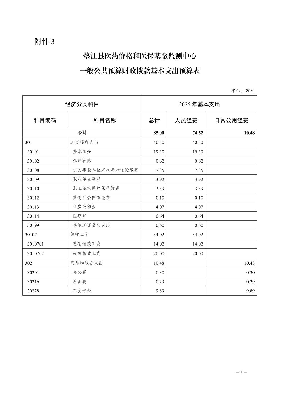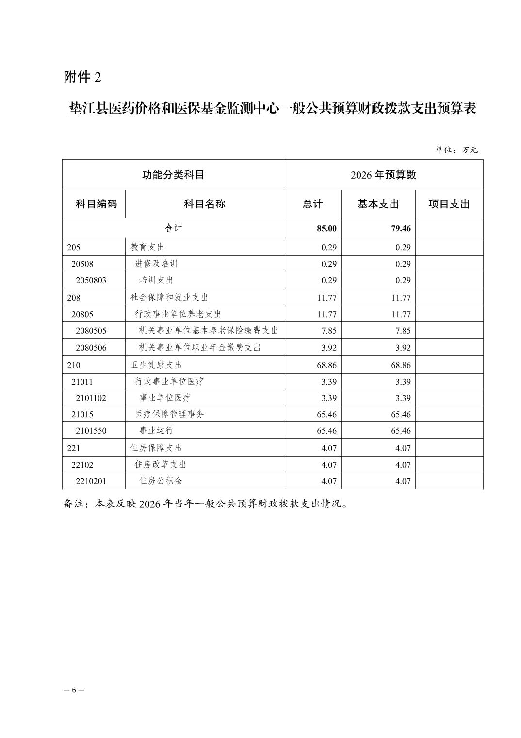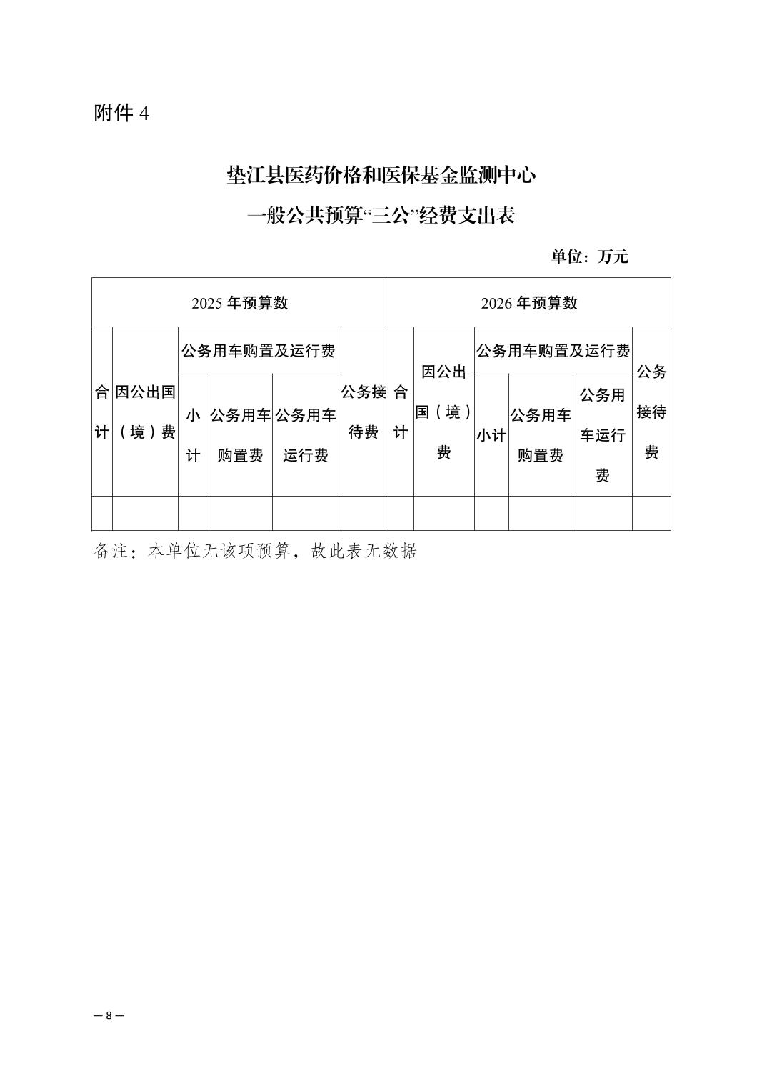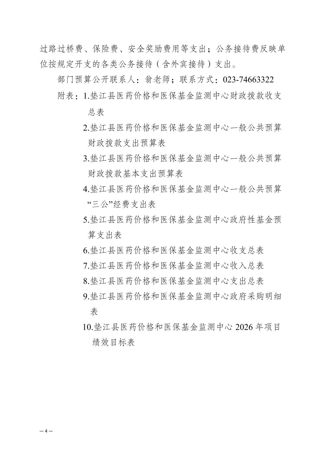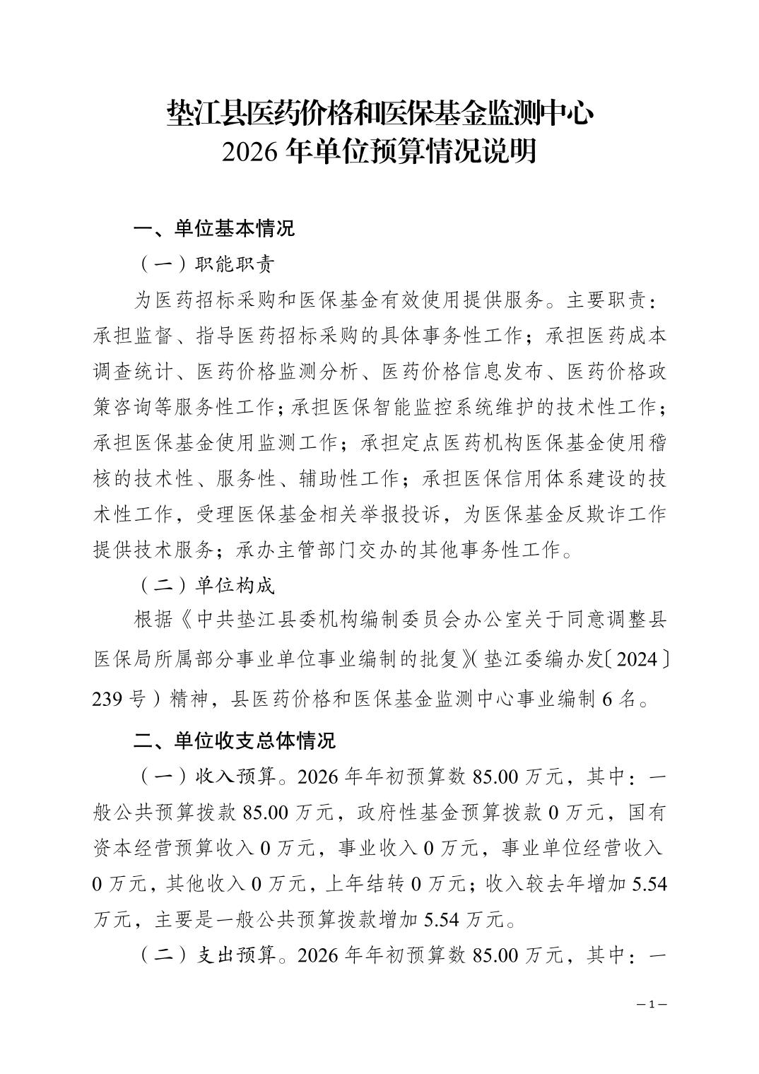 垫江县医药价格和医保基金监测中心 2026年单位预算情况说明