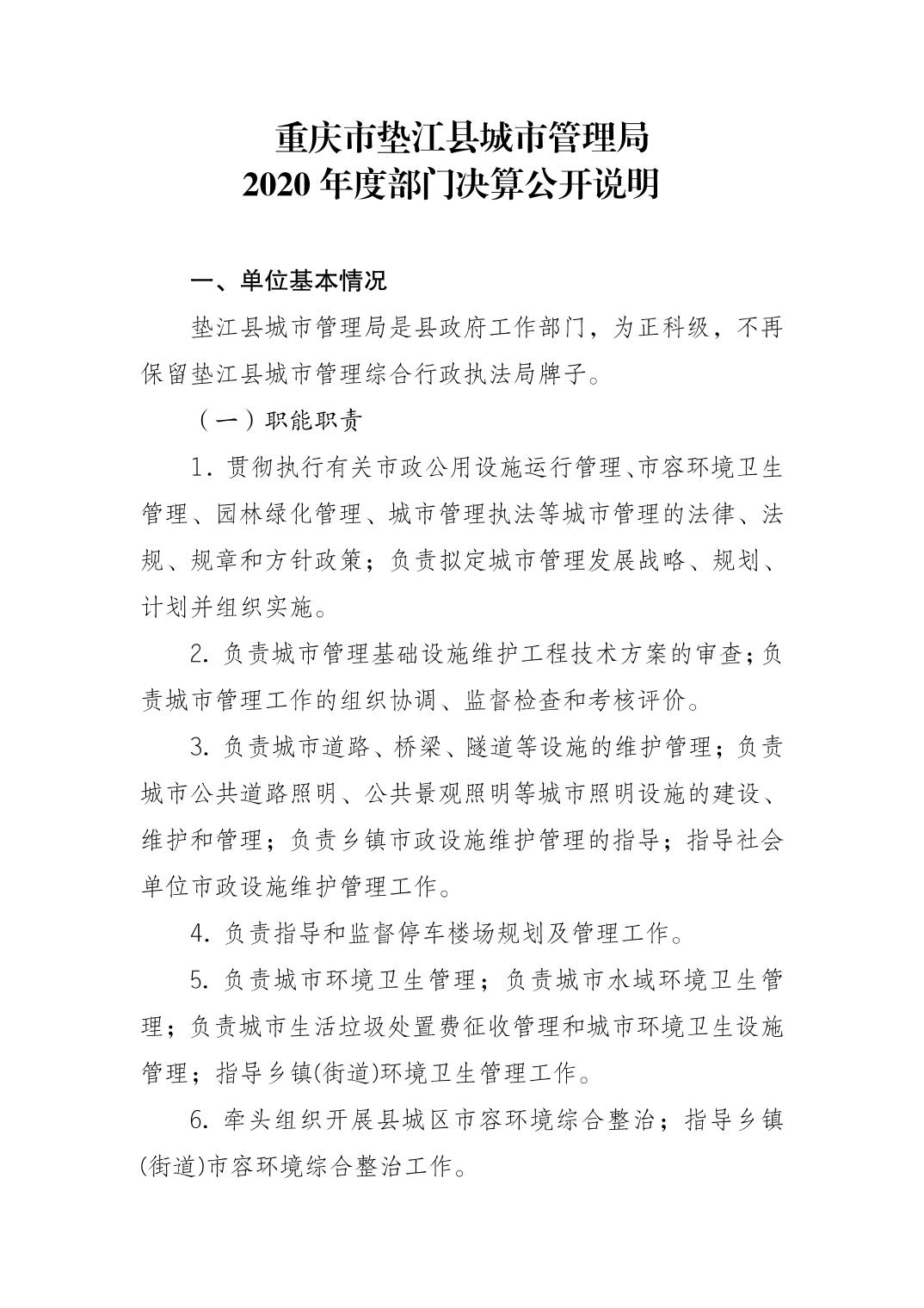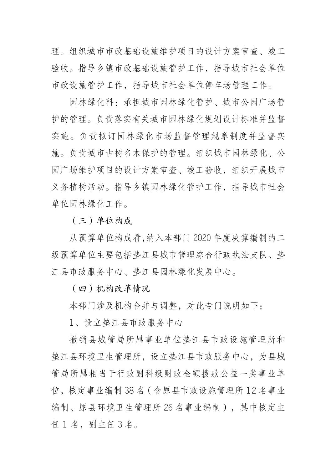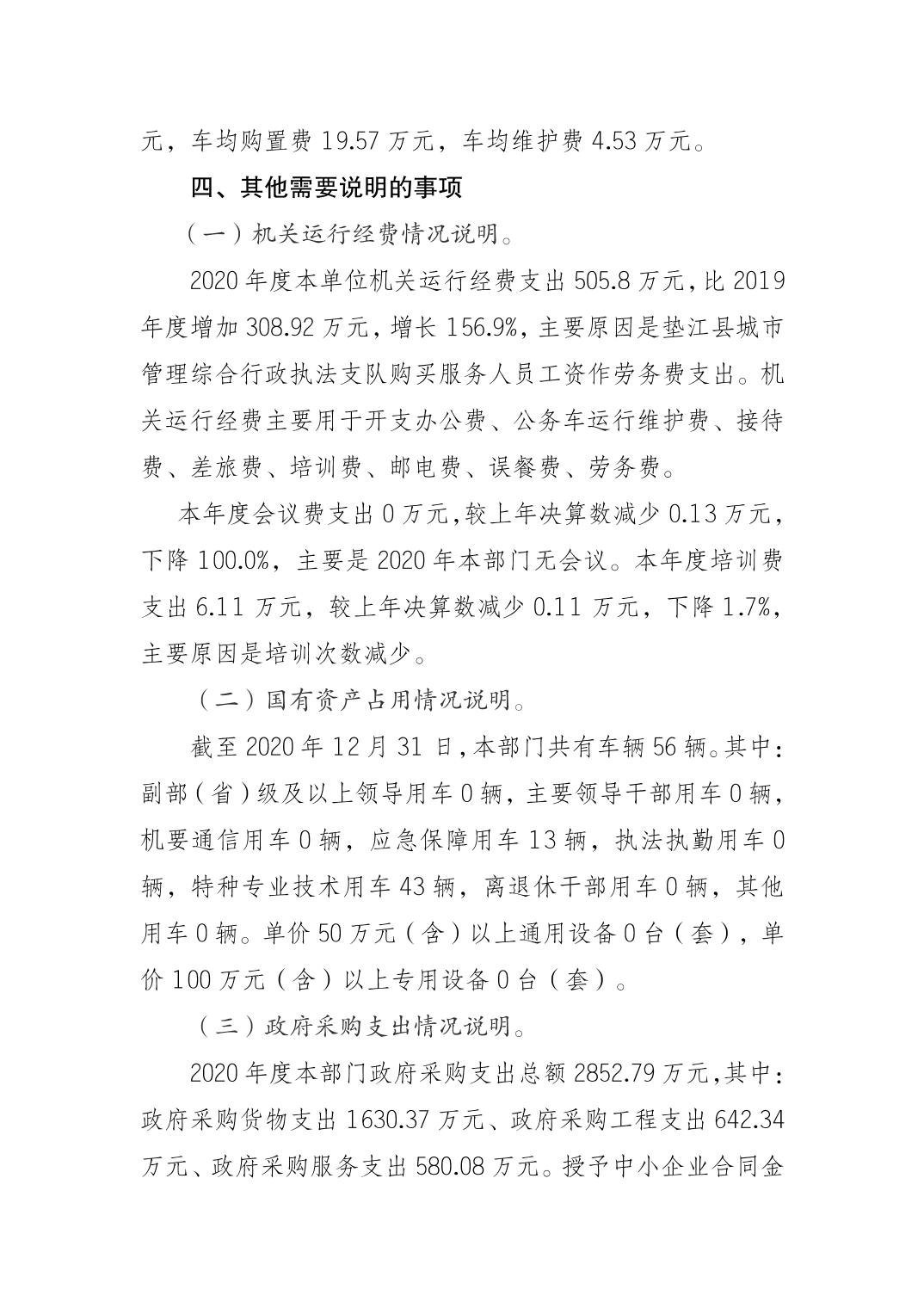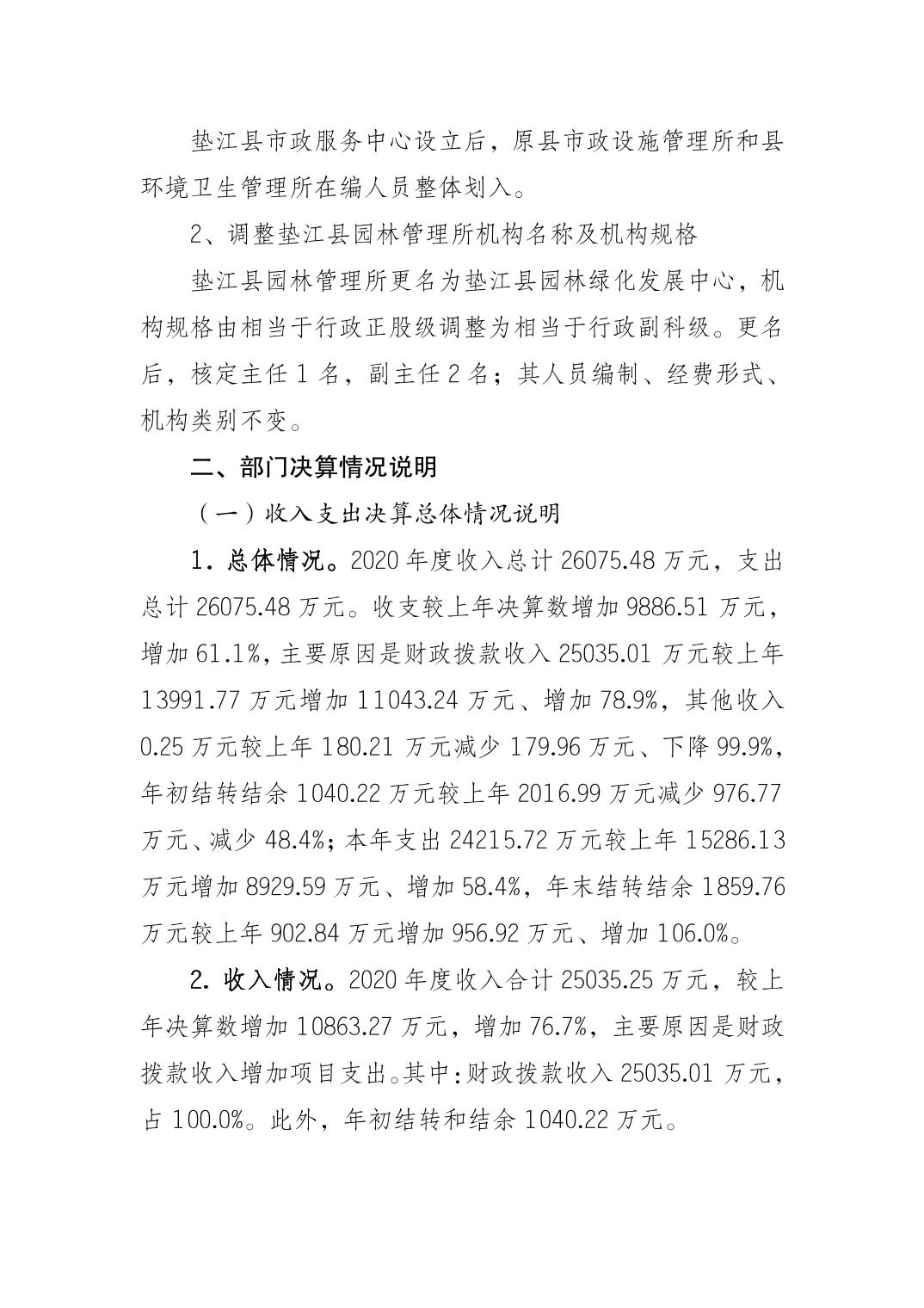 重庆市垫江县城市管理局2020年度部门决算情况说明