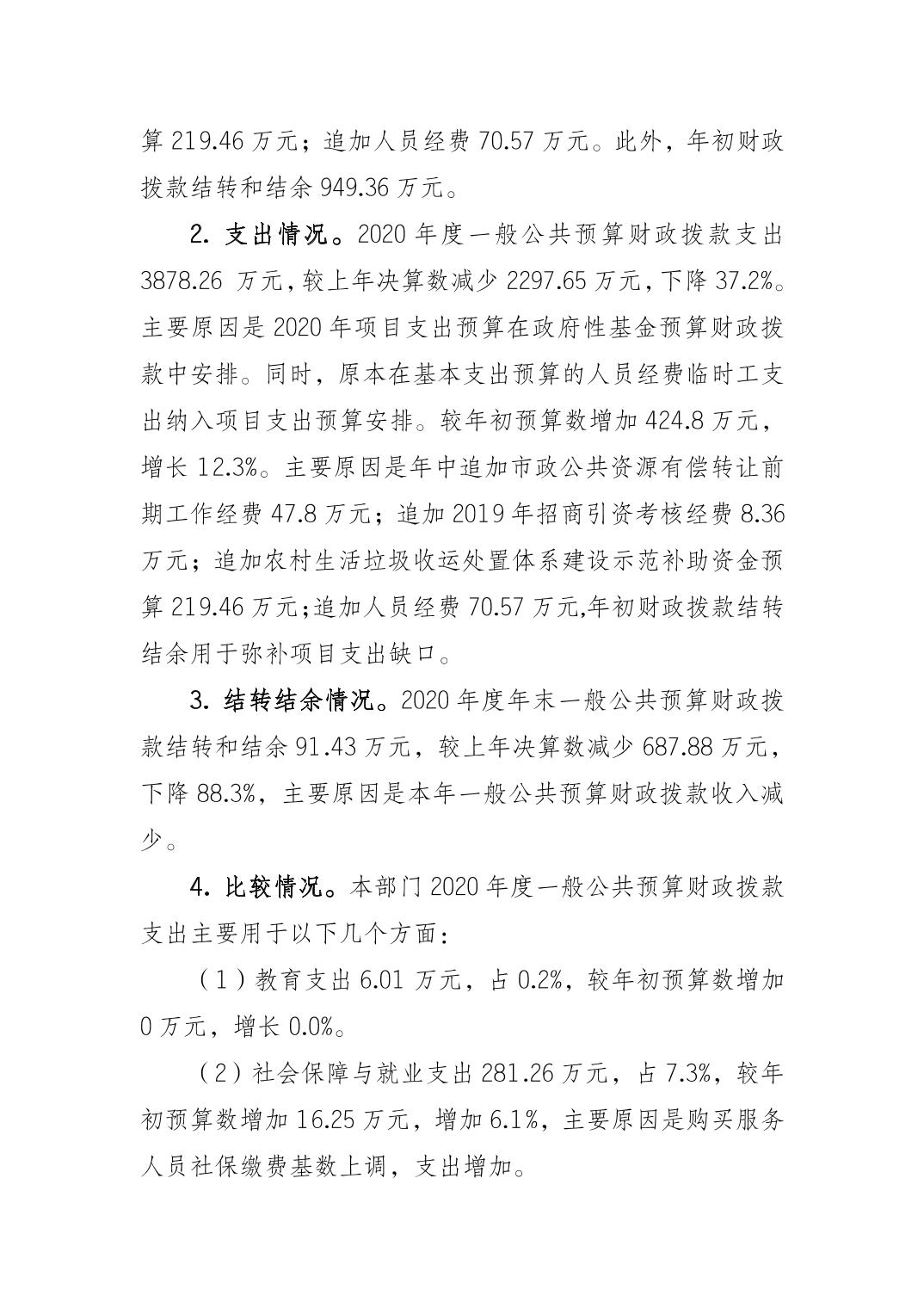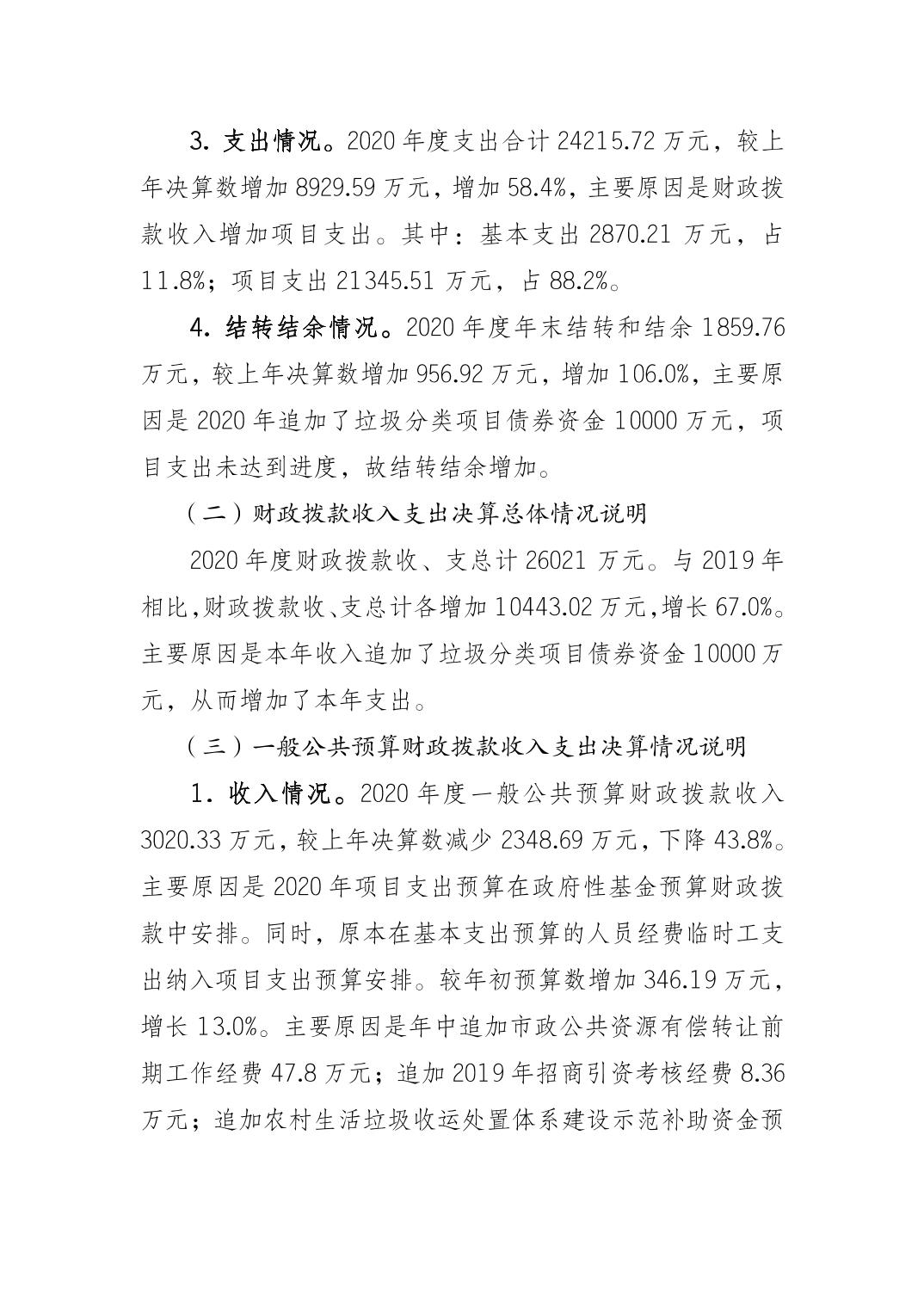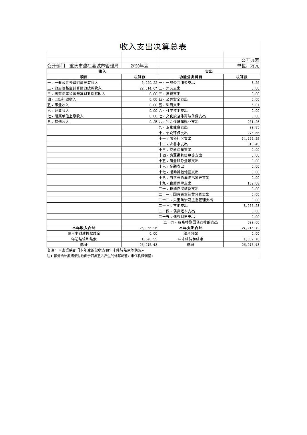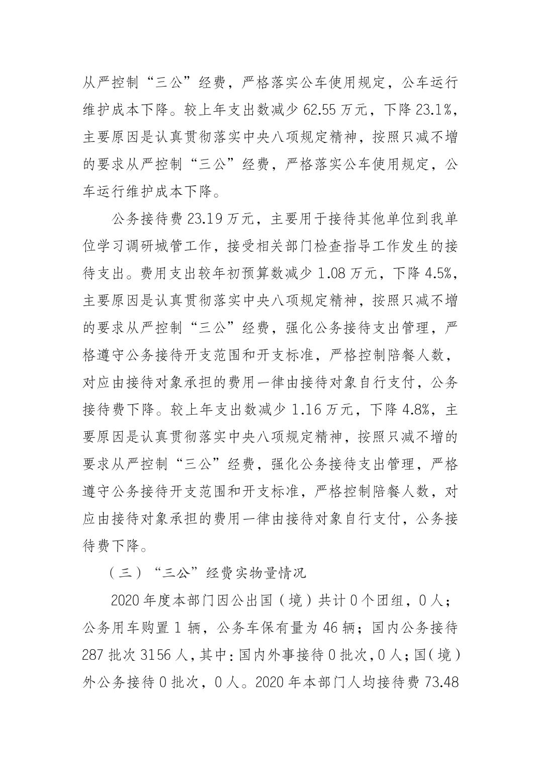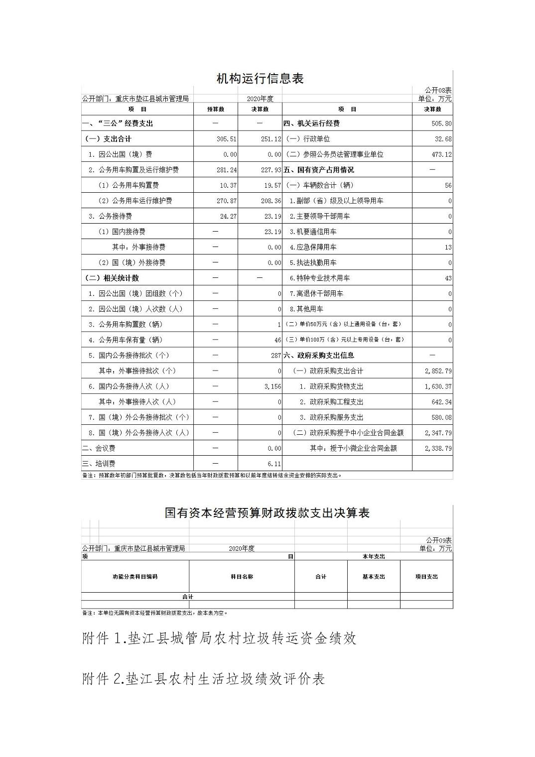重庆市垫江县城市管理局2020年度部门决算情况说明