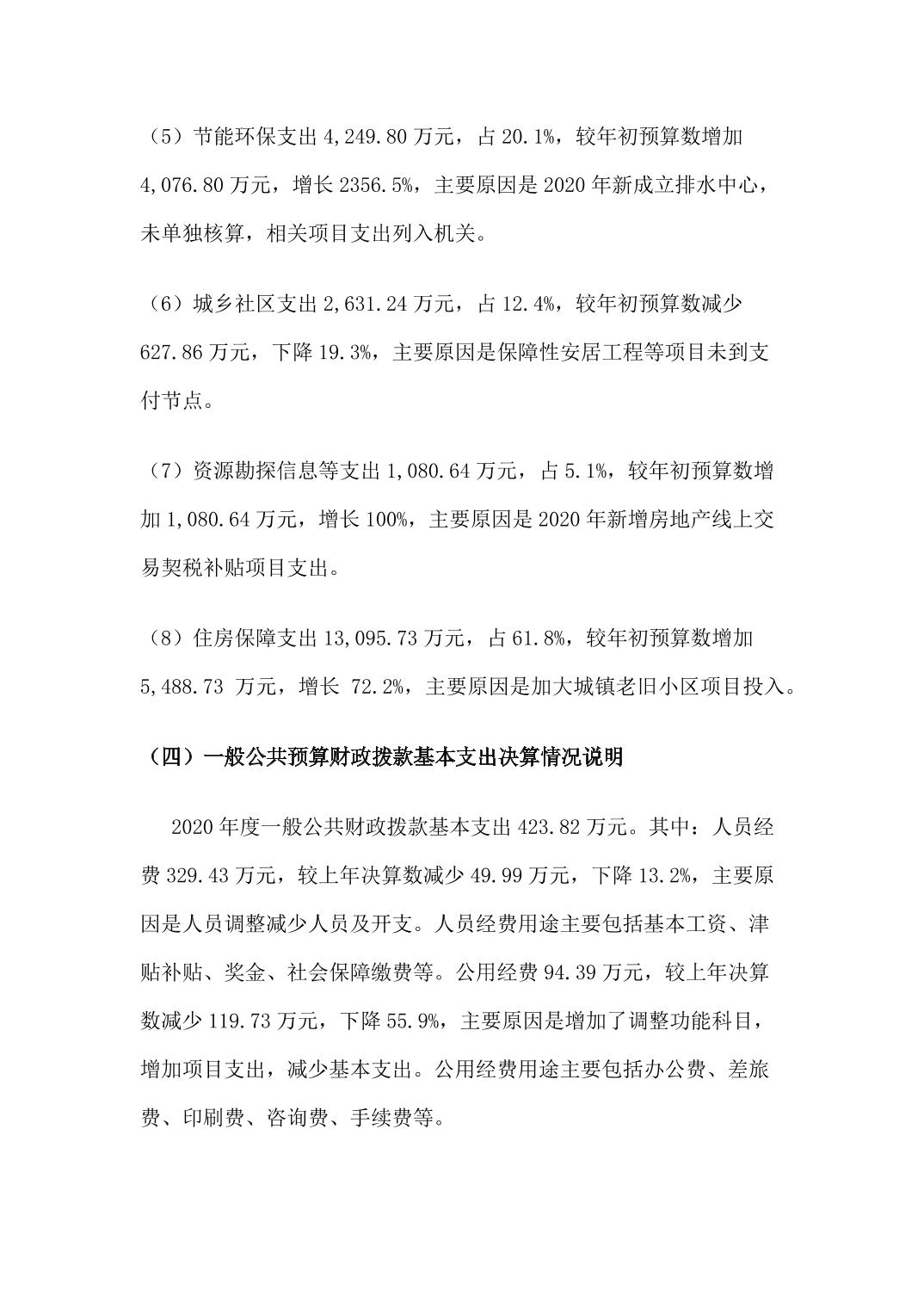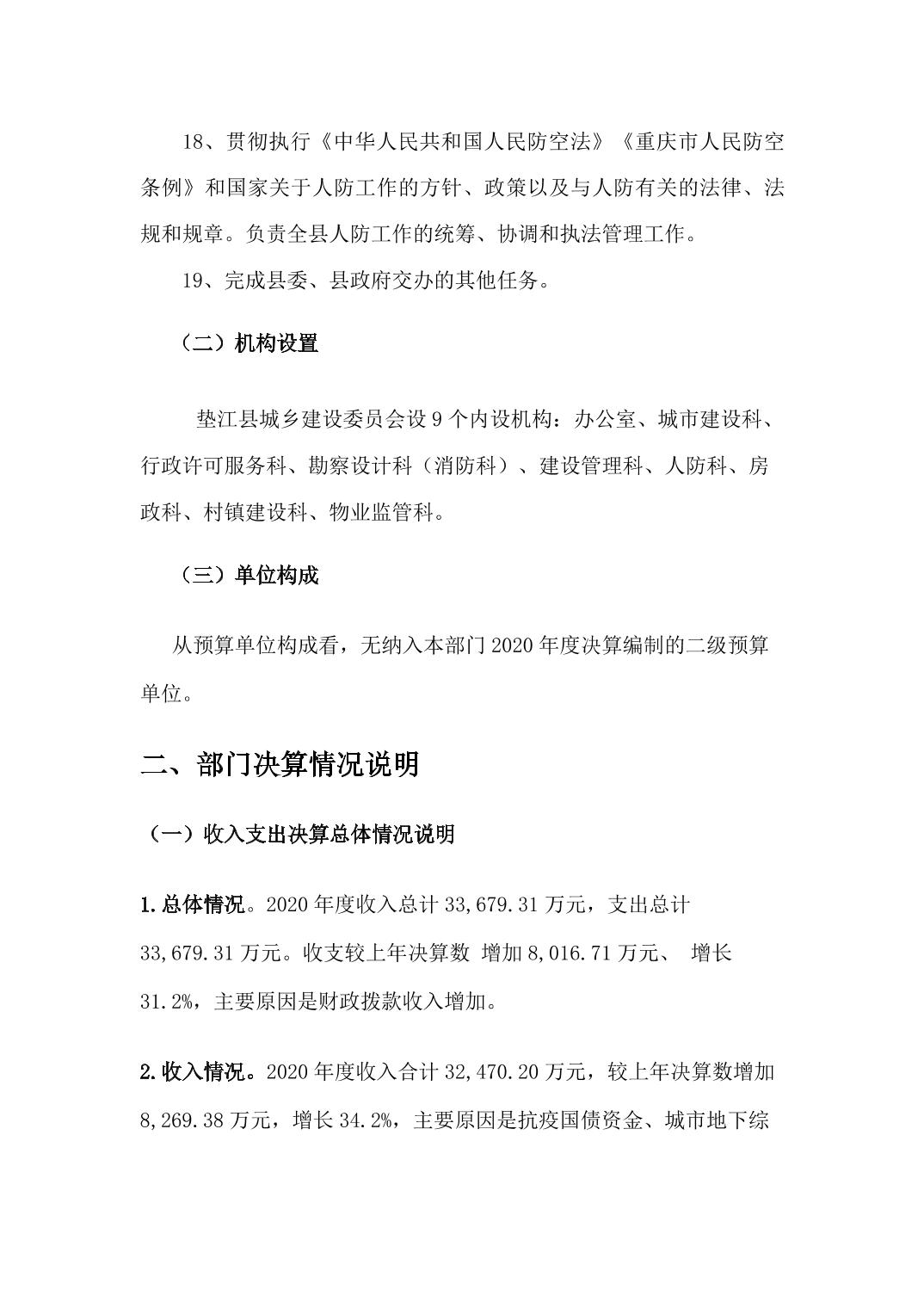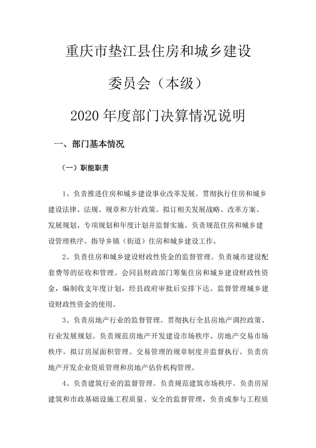 垫江县住房和城乡建设委员会(本级)2020年度部门决算情况说明
