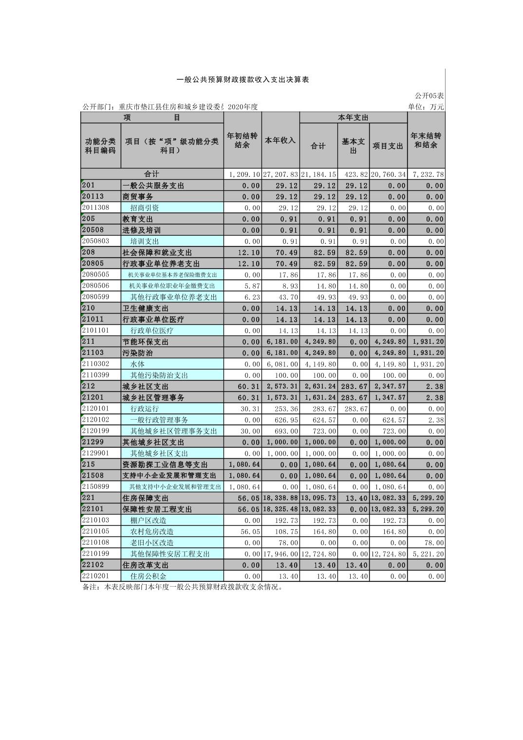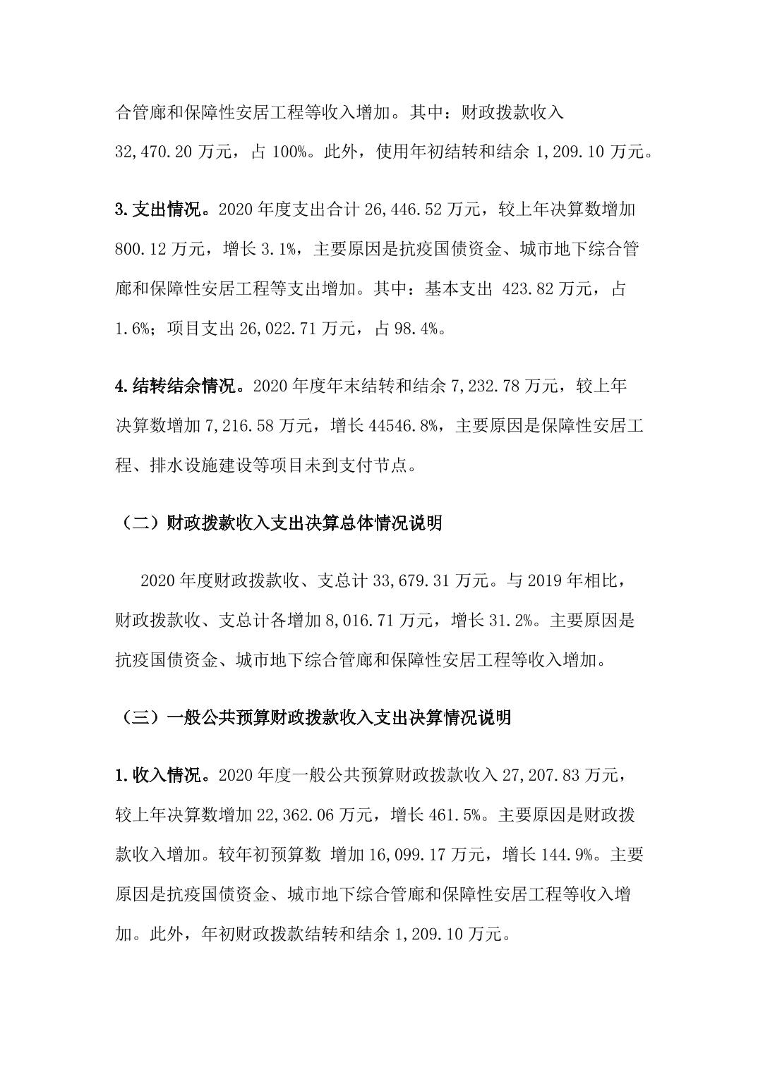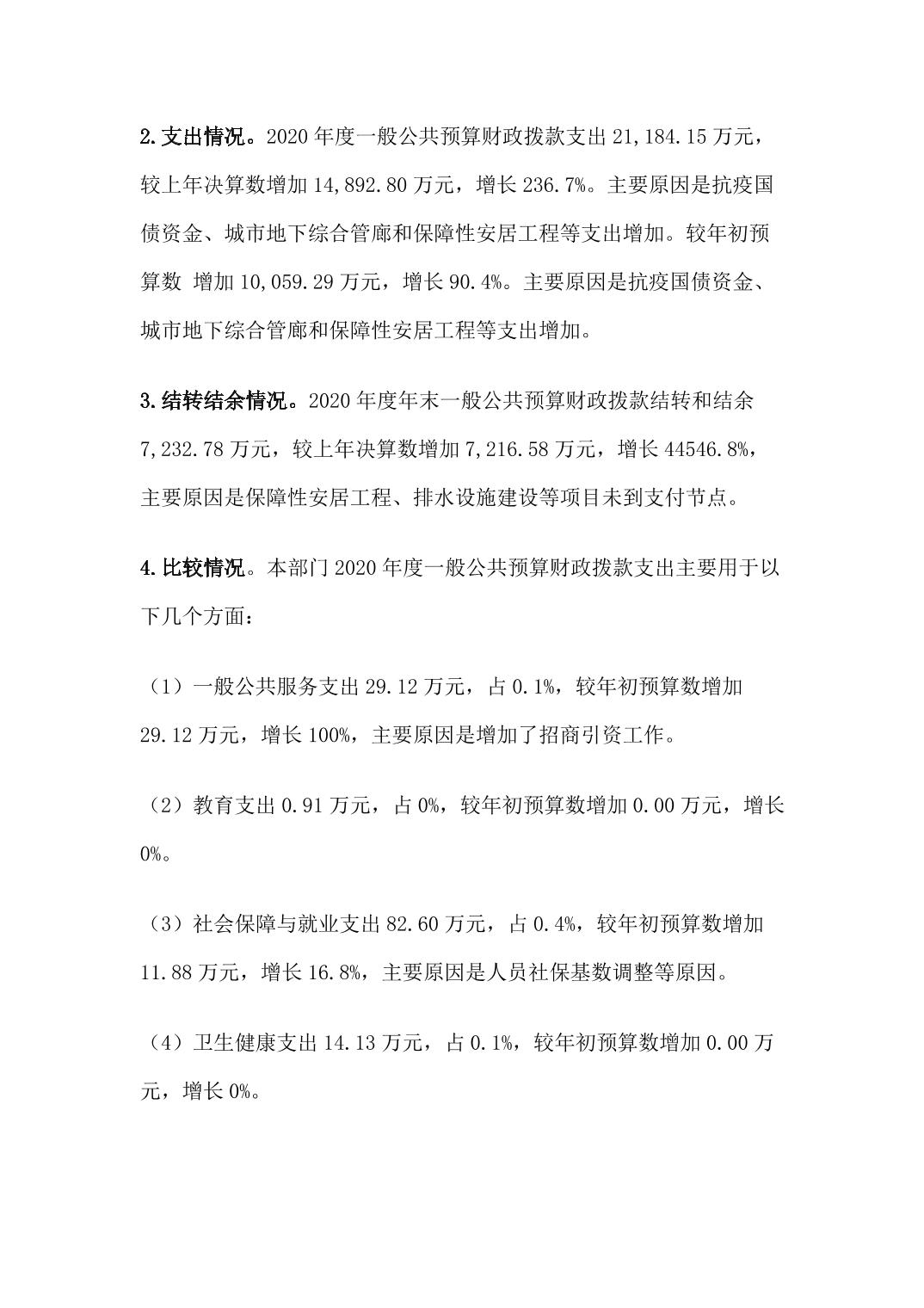 垫江县住房和城乡建设委员会(本级)2020年度部门决算情况说明