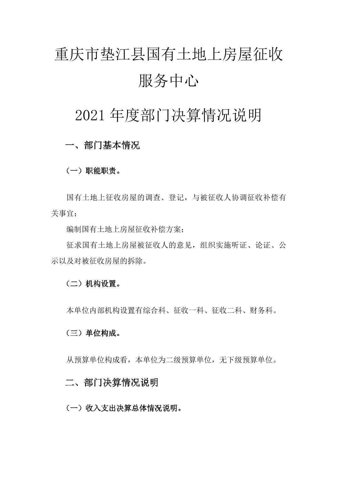 垫江县国有土地上房屋征收服务中心2021年决算公开情况说明