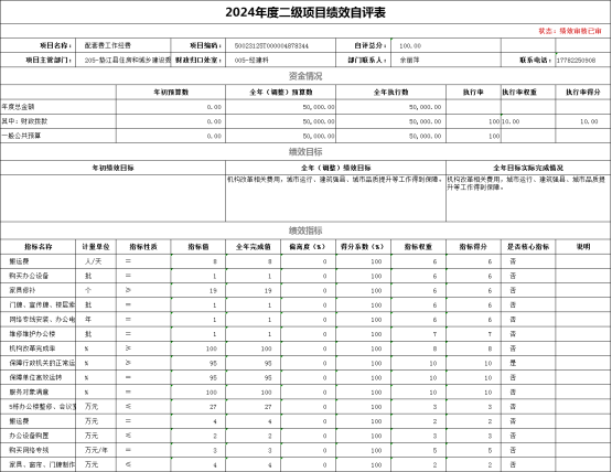 根据预算绩效管理要求,我单位对1个二级项目开展了绩效自评,其中,以填报自评表形式开展自评1项,涉及资金5万元。
