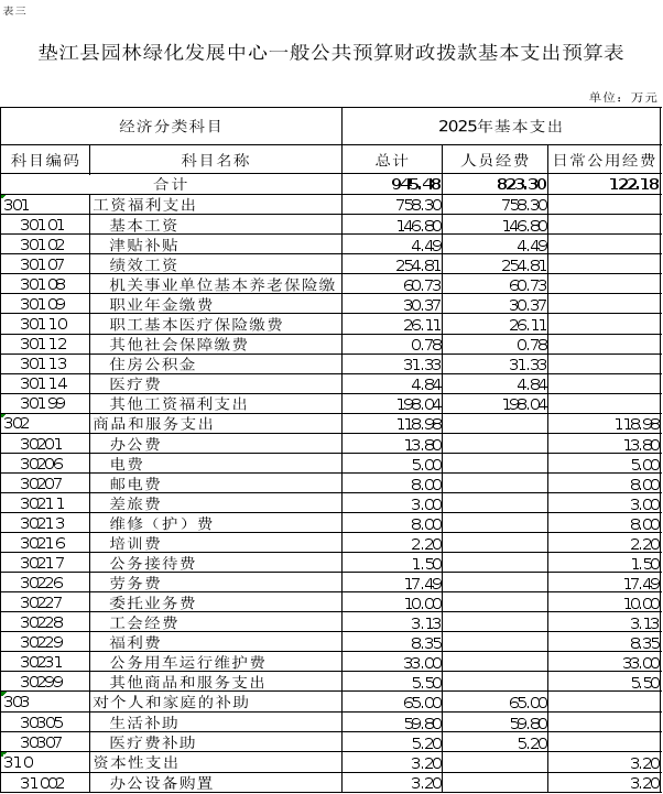 3. 垫江县园林绿化发展中心一般公共预算财政拨款基本支出预算表