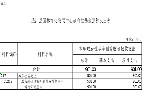 5. 垫江县园林绿化发展中心政府性基金预算支出表