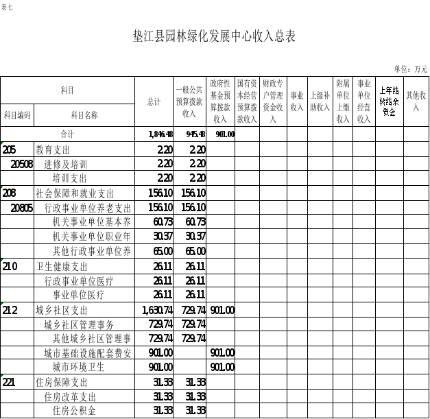 附表:1. 垫江县园林绿化发展中心财政拨款收支总表