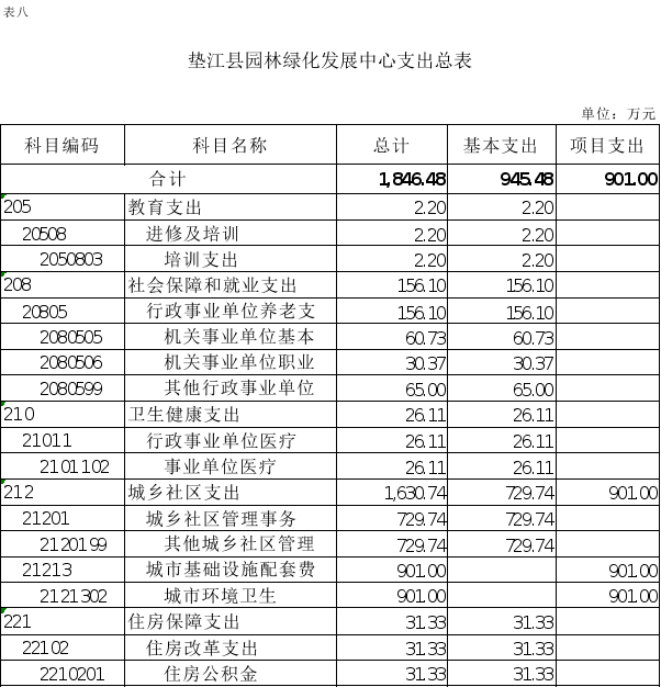 2. 垫江县园林绿化发展中心一般公共预算财政拨款支出预算表