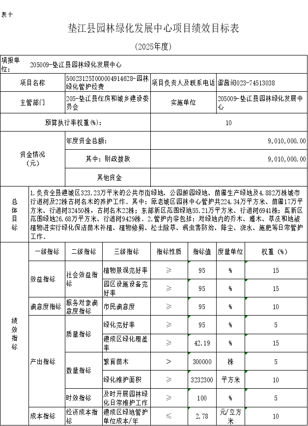 10. 垫江县园林绿化发展中心2025年项目绩效目标表