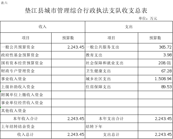 6.垫江县城市管理综合行政执法支队收支总表