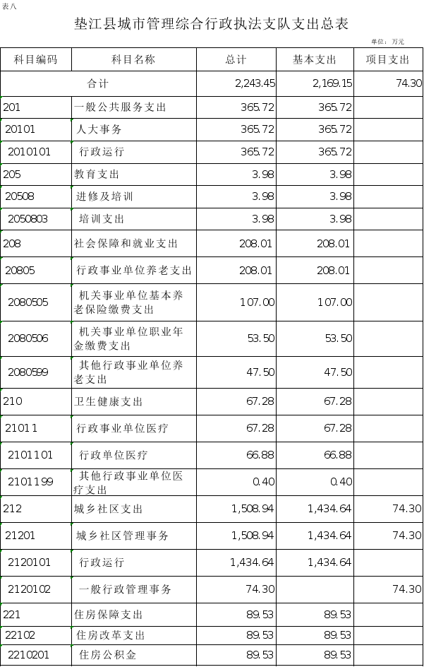 8.垫江县城市管理综合行政执法支队支出总表