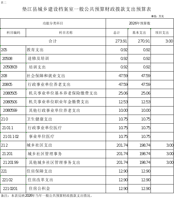 2.垫江县城乡建设档案室一般公共预算财政拨款支出预算表