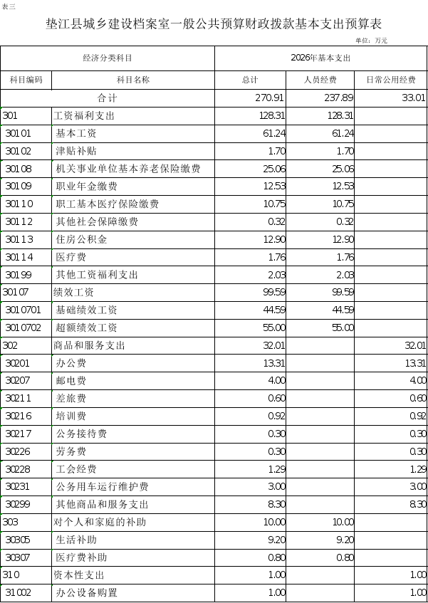 3.垫江县城乡建设档案室一般公共预算财政拨款基本支出预算表