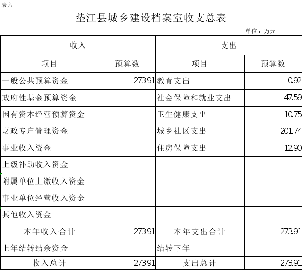 6.垫江县城乡建设档案室收支总表